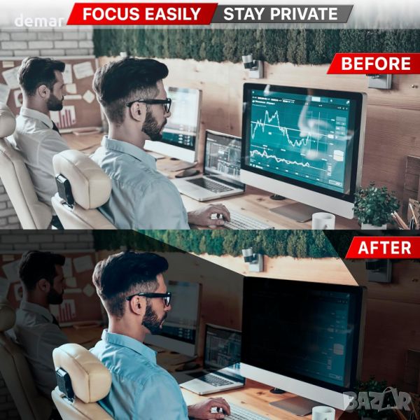 Компютърният екран за поверителност на Vintez е съвместим с раздел 889 и TAA, предоставяйки първокласни решения за поверителност за физически лица, малки фирми, корпорации, правителство и образователни институции. Той гарантира съответствието и сигурността на данните за потребителите в обществени зони и зони с голям трафик, с регулируема яркост, за да променя ъглите на поверителност. Проектиран за екрани с ширина 20 15/16" (20,9 инча/532 мм) и височина 11 13/16" (11,8 инча/299 мм) със съотношение на страните 16:9, той пасва на всички основни марки. Този екранен филтър против отблясъци също предпазва от надраскване и намалява напрежението на очите. Пакетът включва два филтърни екрана за поверителност, ленти за закрепване, плъзгащи се пластини, допълнителни комплекти за инсталиране и капак за уеб камера.