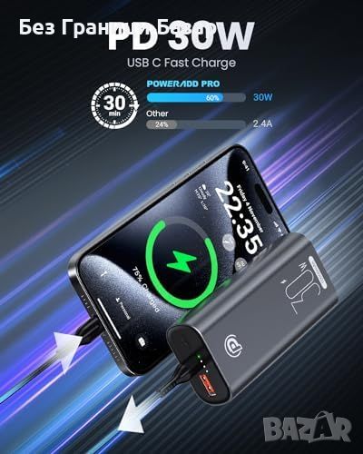 30W Бързо Зареждане: Зареждане и презареждане с 30W USB-C кабел.