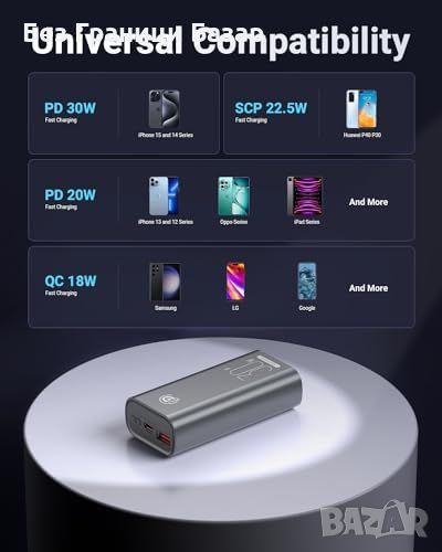 Подходящ за Всички Устройства: Зарежда смартфони, таблети, слушалки и други.