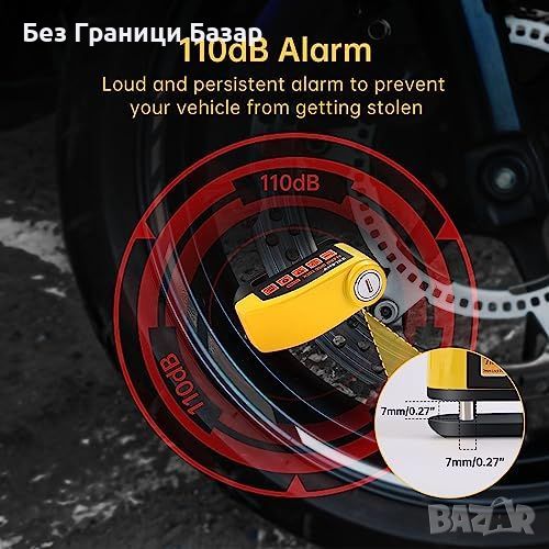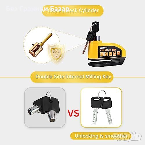 Нова Дискова ключалка за мотоциклет колело с аларма ZELENY - 7mm