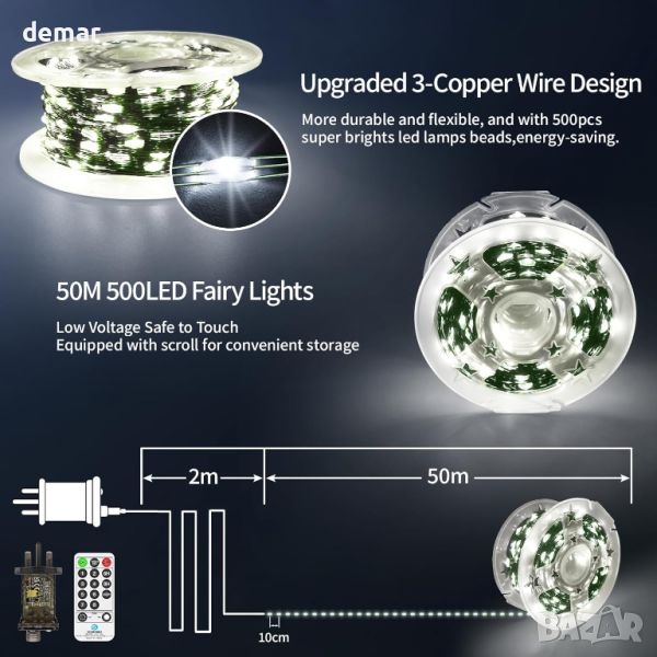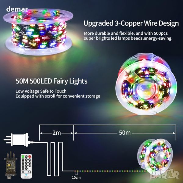 50M Приказни светлини 500 LED, 8 режима, дистанционно, таймер, IP65