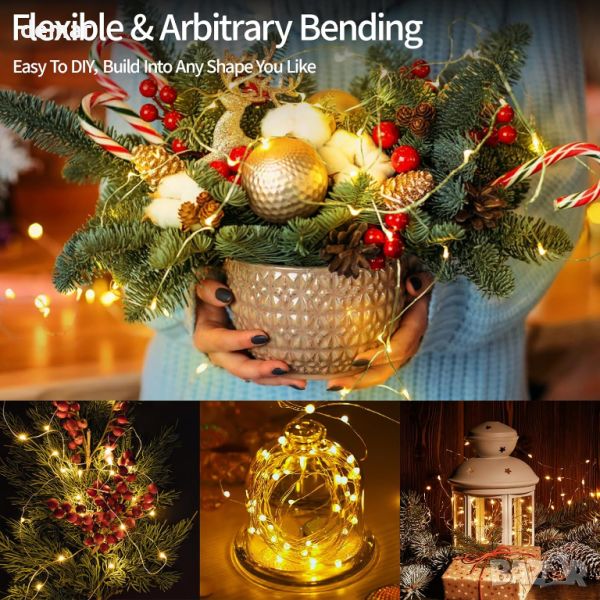 Тези външни коледни светлини се отличават със зелени жици, които се сливат безпроблемно с дървета и гирлянди, подобрявайки вашия декор, като същевременно остават дискретни. Нишката от 50M включва 500 LED светлини върху издръжливи, гъвкави 3 медни проводника, позволяващи лесно оформяне и енергийна ефективност. С водоустойчив рейтинг IP65, тези светлини са подходящи както за вътрешна, така и за външна употреба, като предлагат безопасност с щепсел за ниско напрежение 29 V. Комплектът включва дистанционно за 8 режима на светене, 4 нива на яркост и таймер с функция за памет, улесняваща работата. Пакетът съдържа 500 LED светлини на макара, дистанционно управление и ръководство за употреба, идеални за декориране на партита, празници и различни пространства.