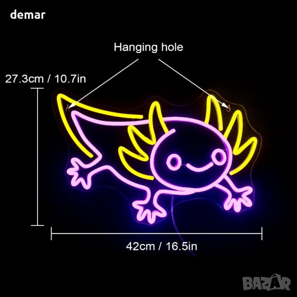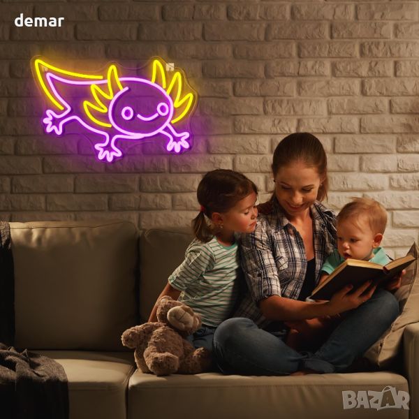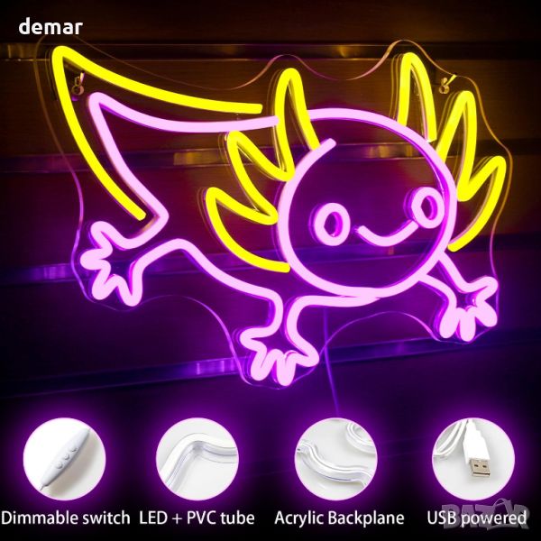 Симпатичният неонов надпис със Salamander създава фантастична атмосфера за спални, детски стаи, класни стаи, партита и зали за игри със своята ясна, равномерна светлина, която радва децата. Изработен от прозрачен акрил и гъвкави LED неонови ленти, той е безопасен на допир, устойчив на повреди и не прегрява. Разполага с два предварително пробити отвора, вериги, куки за лесно закачане, ключ за включване/изключване и 1,5 метра кабел за удобна употреба. В сравнение с традиционните стъклени табели, тази персонализирана LED неонова табела предлага енергийна ефективност, превъзходен живот, работа при ниска температура и подобрена издръжливост, което я прави по-безопасна опция без риск от счупване или нагряване на стъкло.