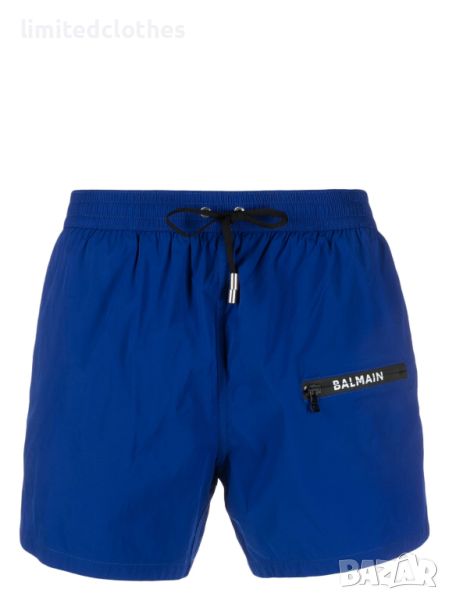 BALMAIN BLUE ZIP LOGO BOXER Мъжки Бански / Плажни Шорти