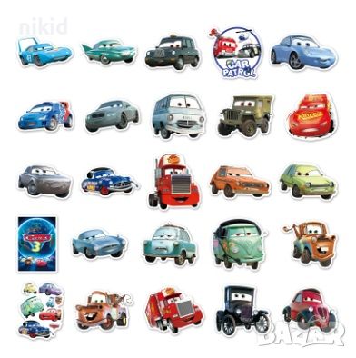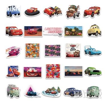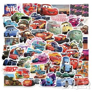 50 бр Cars McQueen колите маккуин макуин самозалепващи лепенки стикери украса декор картонена торта → Обява 45984567