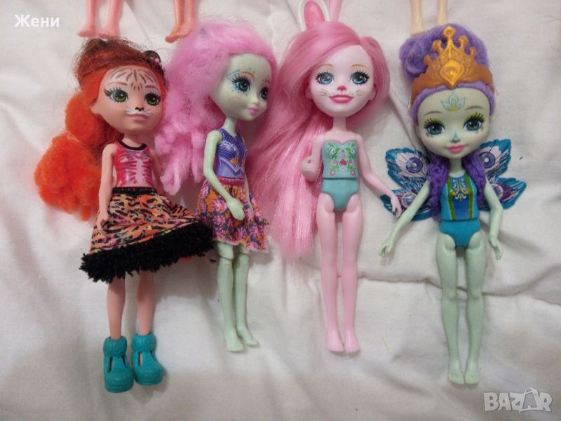 Всички куклички са оригинални Enchantimals. Цените са между 5 и 10 лв, според състоянието и модела им. Отлични с дрешка и обувки/подвижни колене (на горния ред) - 10 лв, отлични без обувки - 8 лв, отлични/много добри без дрешка 6-7 лв, рошавички - 5 лв, със забележка 3 лв. При интерес ще направя допълнителни снимки и ще дам конкретни цени.