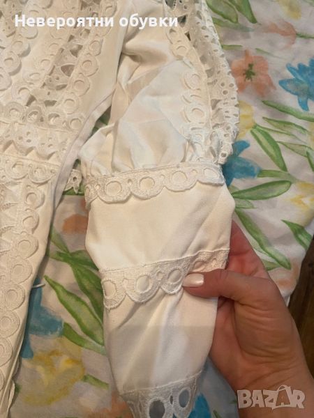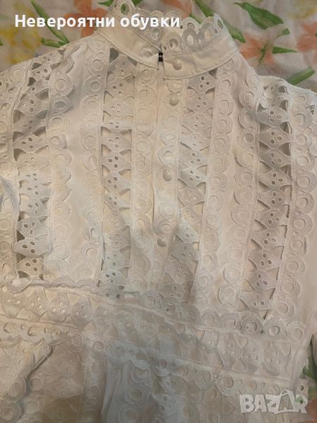 Страхотен бял гащеризон от рязана бродерия, Размер М с цип отстрани и копчета отпред, обличан 2 пъти