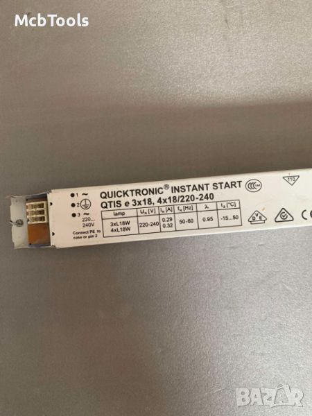 Баластът е предназначен за монтаж на луминесцентни осветителни тела 4 х 18 W. Работят без проблем в отлично състояние.