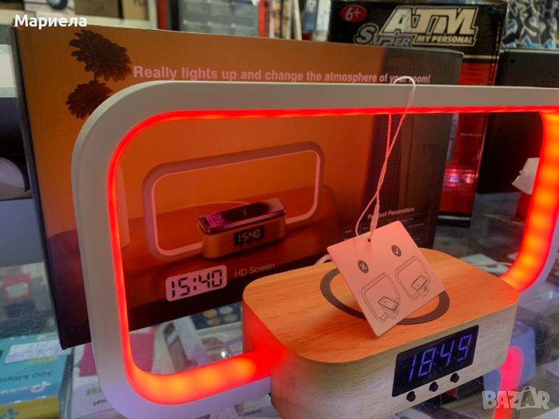 Преминете към модерното удобство с нашата мултифункционална нощна лампа. Безпроблемно интегриран с бързо 10 W безжично зарядно устройство и допълнителен USB порт, той обещава, че вашите джаджи никога няма да останат без енергия, като същевременно поддържа бюрото подредено.