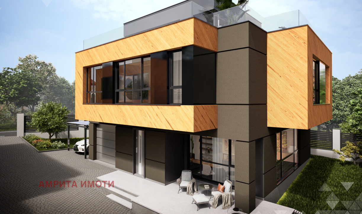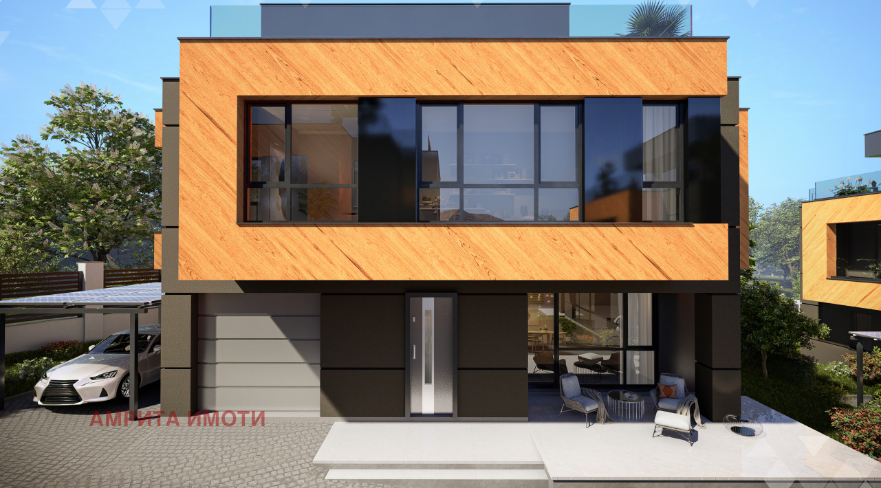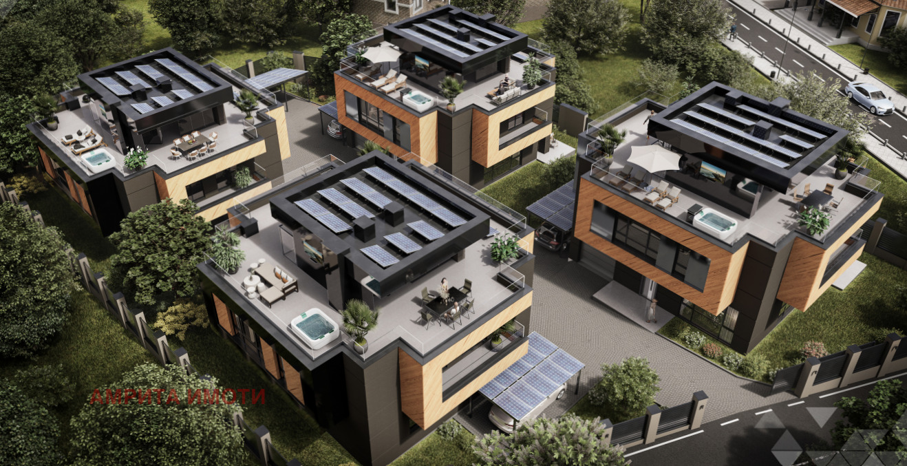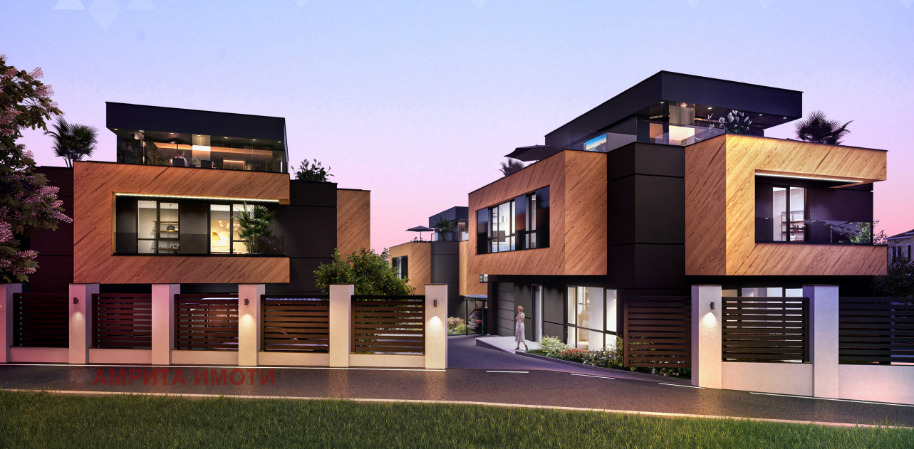 Всяка къща разполага с гараж и две паркоместа, обширни дневна с трапезария и кухня, 3 спални с бани за комфорта на вашето семейство, гардеробно, мокро помещение, домашен кабинет и прекрасна тераса на трето ниво, от която заедно да се наслаждавате на живописната Витоша с нейната палитра от цветове през различните сезони, също така на София и дългата снага на Стара планина.