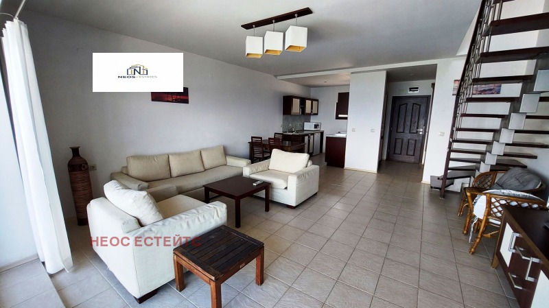 Тристаен апартамент на две нива с невероятна гледка към морето, скалите и Созопол! Апартаментът е в комплекс от затворен тип, построен на самия морски бряг! Общата му площ е 128,80 кв.м. и се продава с наличното обзавеждане! Състои се от: на първо ниво - коридор, хол с трапезария и кухненски бокс, тераса с панорамна гледка, баня с тоалетна ; на второто ниво - две спални, баня/WC и тераса с гледка към морето. Комплексът работи целогодишно и е подходящ за постоянно пребиваване! Целогодишна поддръжка и охрана. Таксата е 15 Евро за кв.м. годишно.