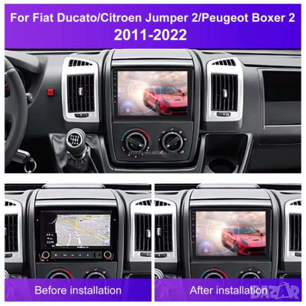 Мултимедия, Двоен дин, с Android, за Fiat Ducato, Peugeot Boxer, Citroen Jumper, навигация 2016-2022