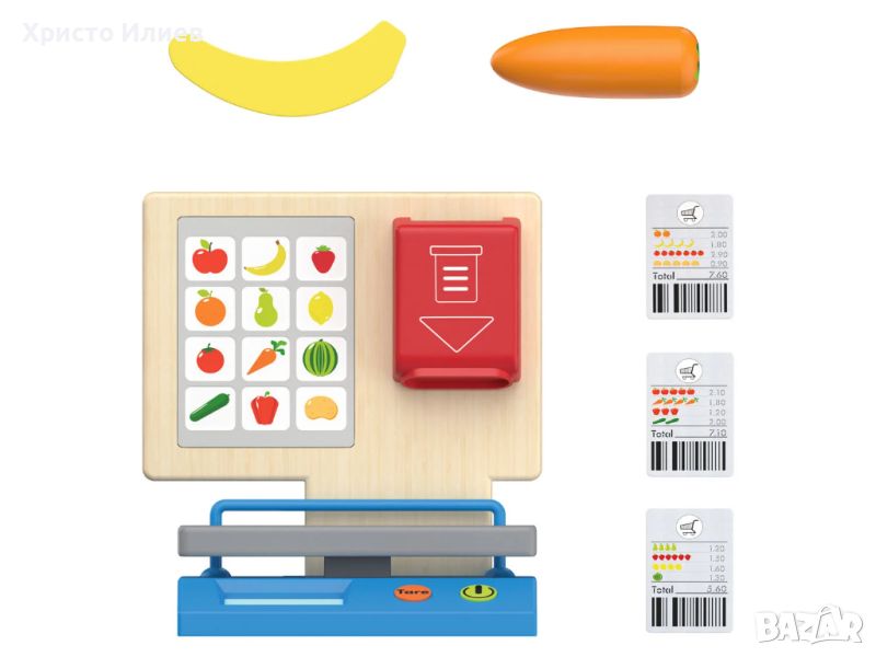Детски дървен кантар везна с измерване Дървена играчка за магазин