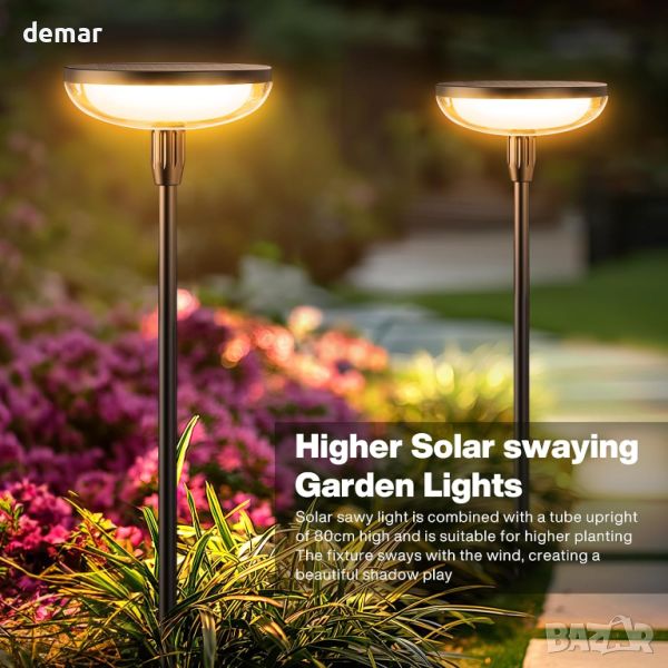Тези уникални слънчеви люлеещи се градински светлини се отличават с 360-градусово дифузно сияние, двуслойни овални абажури и дълги гъвкави тръби, създаващи романтична и уютна атмосфера, докато се люлеят от бриза. Оборудвани с 8 подобрени LED перли, тези светлини предлагат висока яркост от 34 LM и голяма батерия от 1000 mAh, осигуряваща 8-14 часа осветление след пълно зареждане. Те са 100% захранвани от слънчева енергия и автоматично се включват на здрач и се изключват на зазоряване, което ги прави екологични и рентабилни. Изработени от ABS материал с висока якост и IP65 водоустойчивост, те са издръжливи и надеждни при тежки климатични условия. Идеални за градини, тревни площи, пътеки, вътрешни дворове и дворове, тези светлини са лесни за инсталиране без никакви инструменти, осигурявайки красиво допълнение към вашето външно пространство.