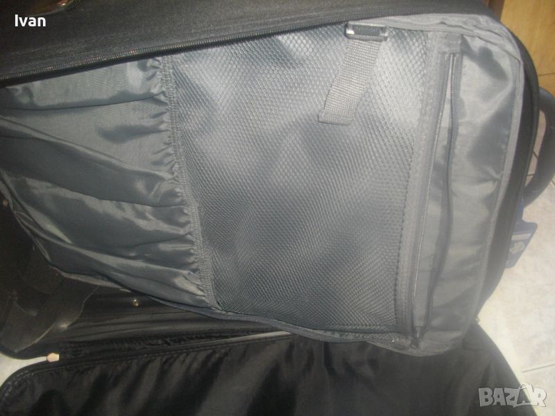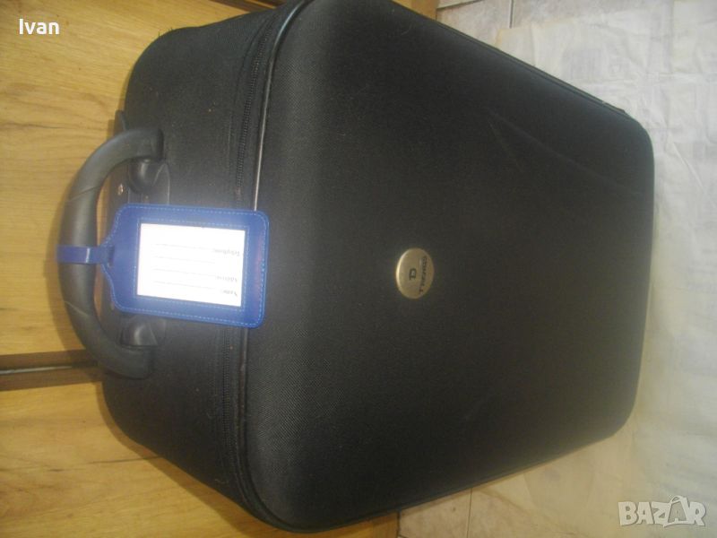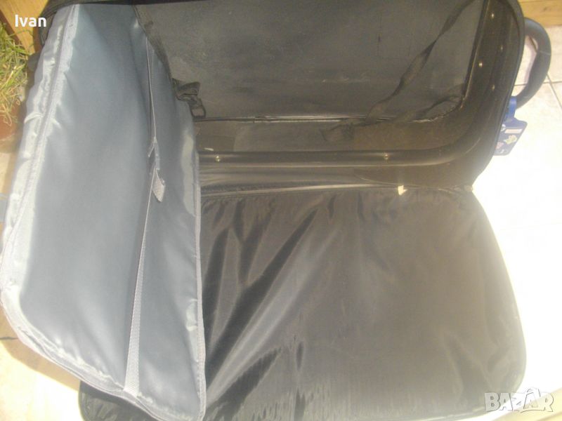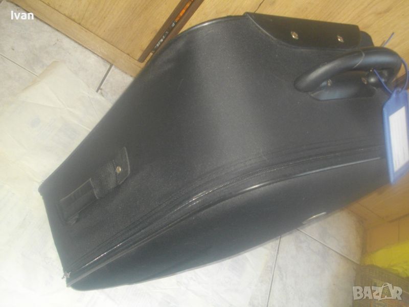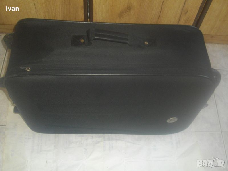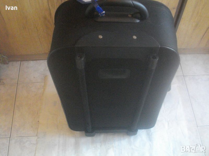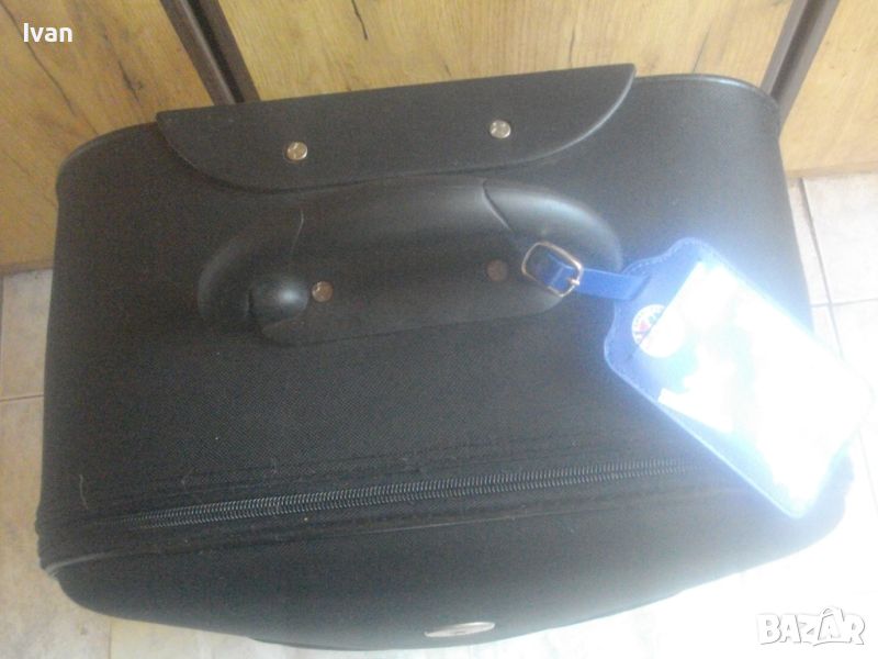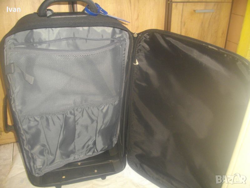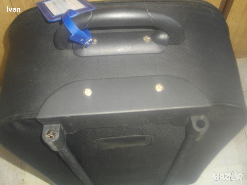 ОПИСАНИЕ на куфар пътнически - пътна чанта - TRENDS - цена 79 лв. Почти нов, с много запазен външен вид и добро състояние. Всички ципове на отделенията са налични и вървят леко, без запъване. ЗАБЕЛЕЖКА - извадена е и липсва телескопичната дръжка за носене, но другите 2 дръжки горна и странична са налични. Височина на куфара - 63 см, като се вдигне горната дръжка - 70 см, ширина - 38 см, дълбочина - 21 см. Горна дръжка на куфара от твърда пластмаса, странична дръжка за носене като пътна чанта - кожа и текстил. На горната дръжка е наличен барж от ПВЦ найлон с отделение и листчета на латиница за вписване на лични данни. Дълбочина за пълнене на куфара с багаж - 20 см. Вътре е с колани и отделна вадеща се сива преграда твърда, която е с множество отделения и джобове оот мрежа и текстил с ципове, която може да се ползва и самостоятелно като несесер. Циповете на куфара са в пълна изправност и вървят леко без запъване. Марка на куфара TRENDS, с наличие на метална табела отпред на лицевата част на куфара, с логото на марката. Материал на куфараа - текстил. Цвят - антрацит черен. Отдолу е с 2 черни твърди ролкови колелца и черна твърда пластмасова стойка за стабилен самостоятелен стоеж. Тегло - 3,0 кг.