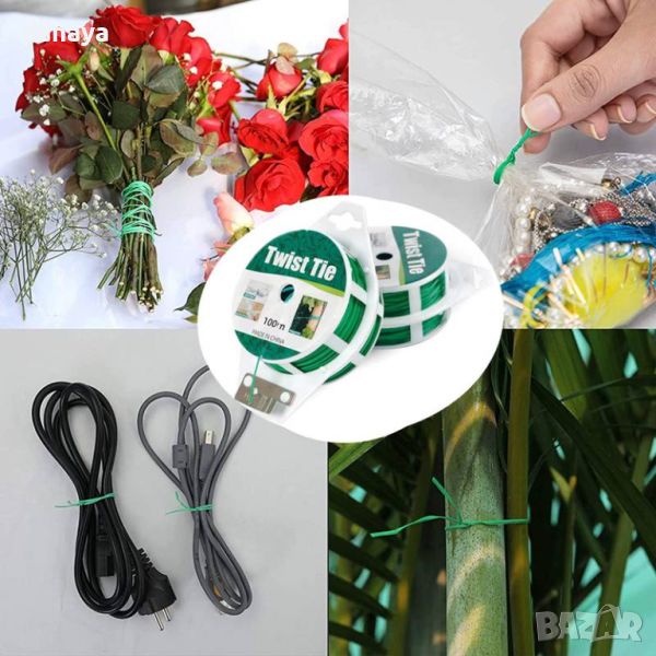 Градинарска тел с резец. Макара с желязна тел с пвц покритие, подходяща за поддръжка на растения и други градински цели. Снабдена с удобен резец. Широко приложение – с нея може да връзвате всичко, което е необходимо – торбички, букети цветя, предмети и др.