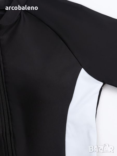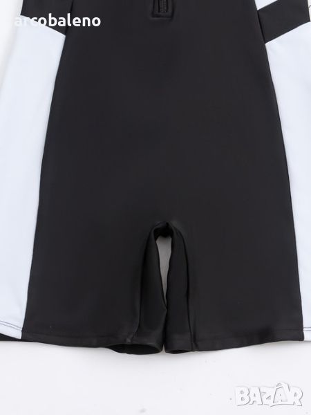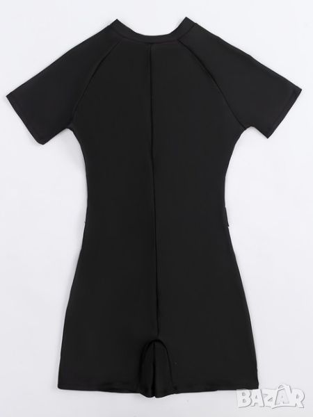 Дамски бански костюм с цип с контрастен цвят и къс ръкав за сърфиране