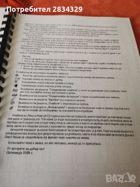 Ксерокопие на учебни по испански. За начинаещи, съгласно и, кскмваниятана И сткгйтаСервантес. Включва 12 урочни единици.