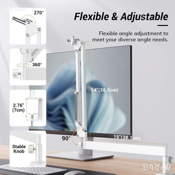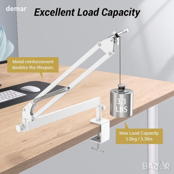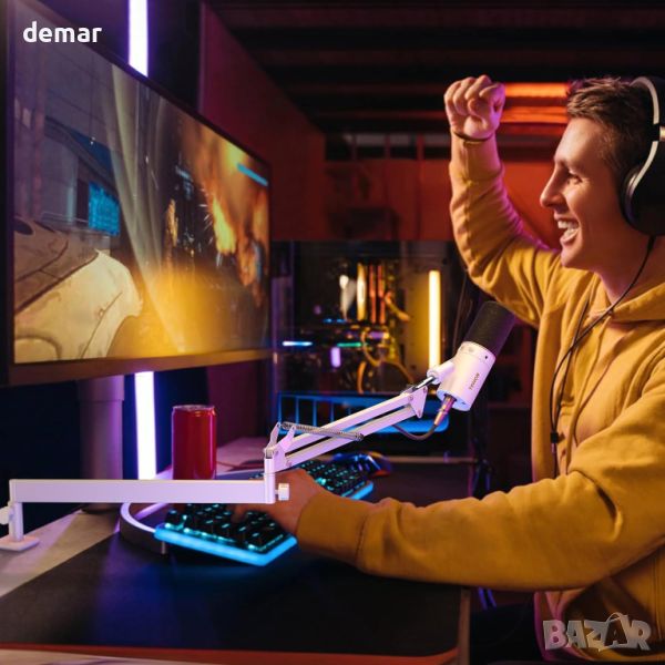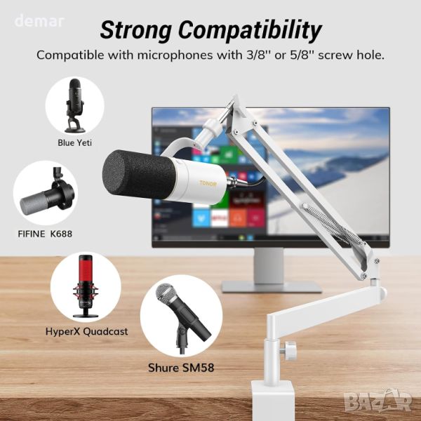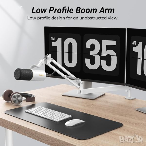 TONOR рамо за микрофон, премиум нископрофилно рамо за микрофон, T20LP, бяло