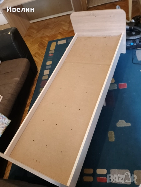 Леглото е разглобено. В момента се ползва кошарата като бюро.