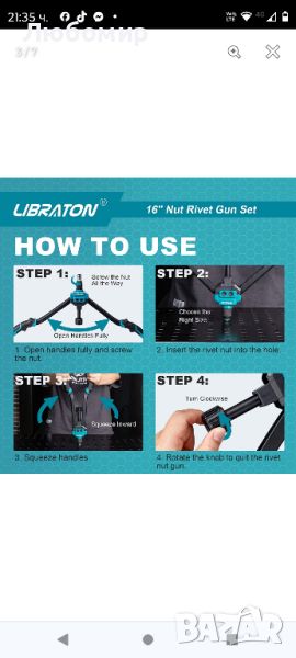 НИТАЧКА LIBRATON, 70 ГАЙКИ ЗА НИТОВЕ, 7 СМЕНЯЕМИ ДОРНИКА ЗА НИТОВЕ
