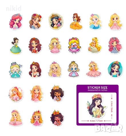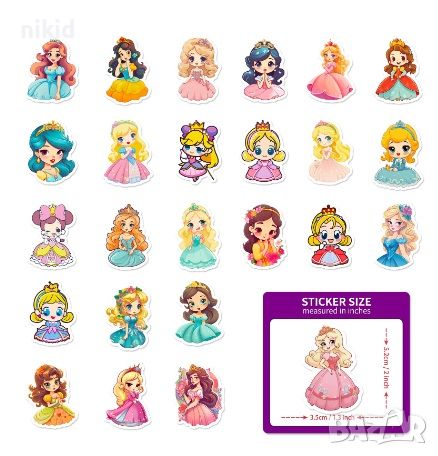 50 бр Кукли принцеси принцеса кукла самозалепващи лепенки стикери за украса декор картонена торта → Обява 45999563