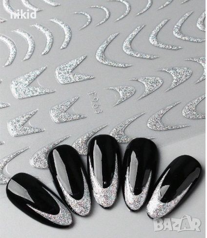 Сребрист брокатен френски маникюр самозалепващи лепенки стикери за декорация нокти → Обява 45999889