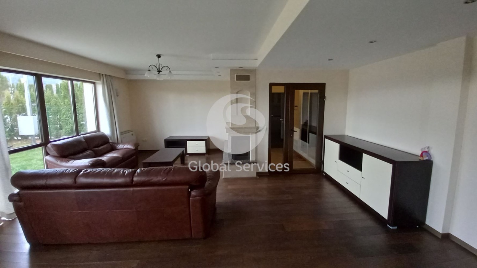 Разполага с дневна с кухненски бокс, пет спални, четири бани, гардеробни и складови помещения.