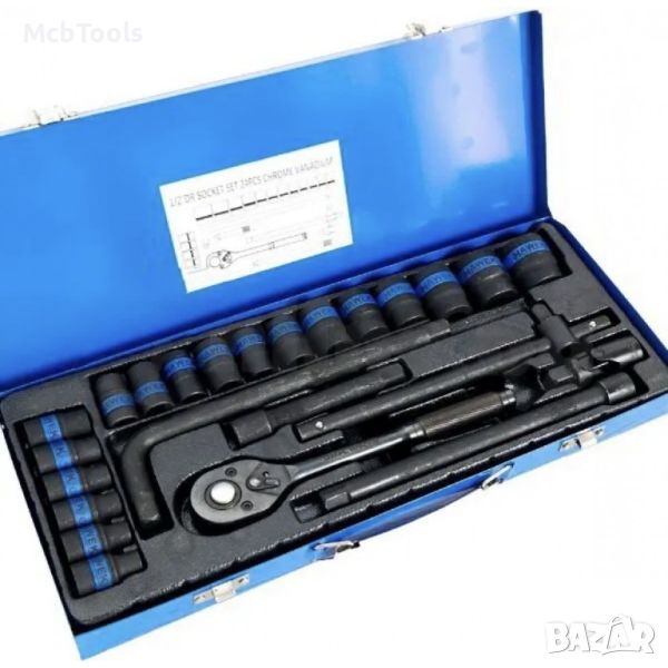 – 18 бр. вложки: 10, 11, 12, 13, 14, 15, 16, 17, 18, 19, 20, 21, 22, 23, 24, 27, 30, 32 мм.