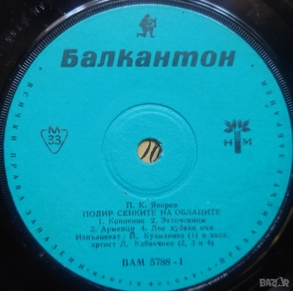 Пейо Яворов - Подир сенките на облаците 7" сингъл ВАМ 5788 в много добро състояние, с оригинална обложка. Цена 2.00 лева.