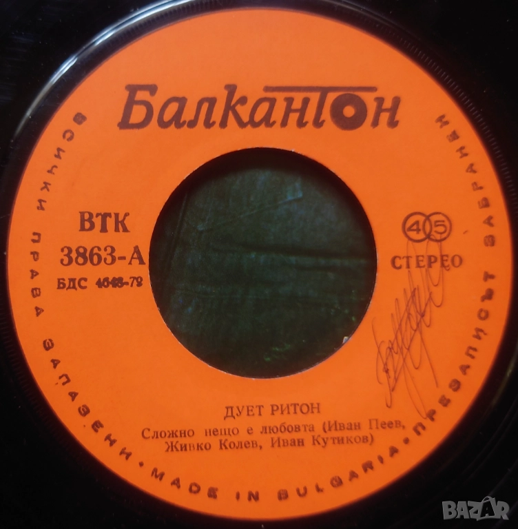 Дует Ритон – Сложно нещо е любовта 7" сингъл ВТК 3863 в отлично състояние, с оригинална обложка. Цена 35.00 лева.