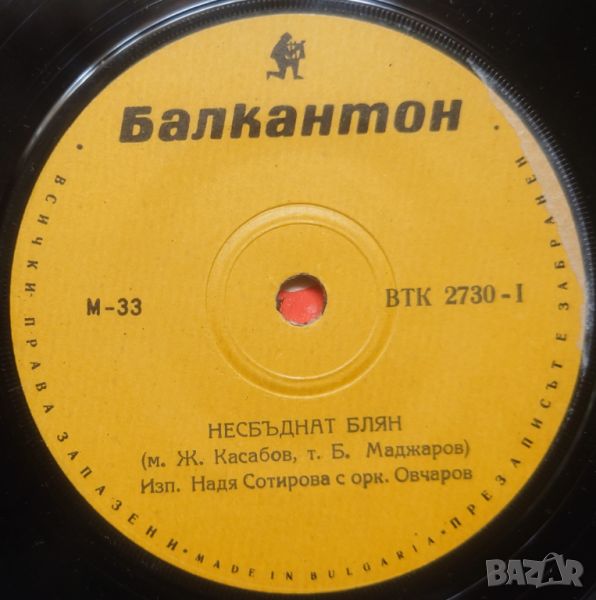 Надя Сотирова – Несбъднат блян / Мечта една ми остана 7" сингъл ВТК 2730 в много добро състояние, с обложка. Цена 4.00 лева.