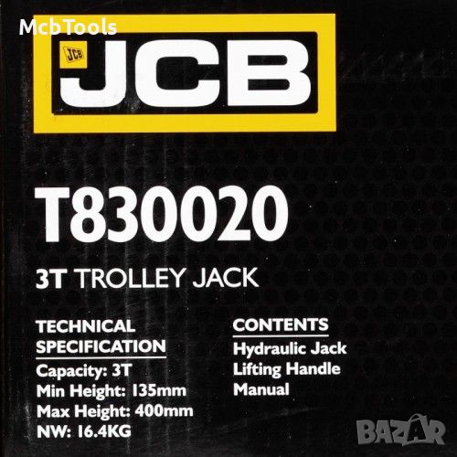 Професионален крик крокодил на марката JCB с товароподемност 3т , усилена конструкция , крикът е с максимална височина 400мм , което позволява повдигането на по-високи коли , бусове и джипове.