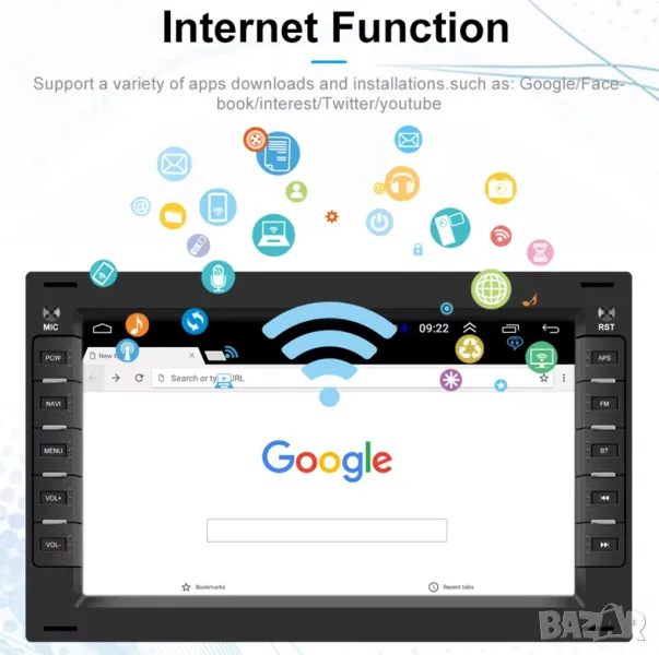 От Google Play Store можете да инсталирате всички любими и нужни приложения, както и тези, които има на вашия смартфон. Пуснете интернет като активирате Hotspot (интернет точка за достъп) от смартфона си и свържете мултимедията към интернет мрежата, за да се възползвате от безкрайните възможности, където и да сте. Пуснете видеа от YouTube и каквото още пожелаете.