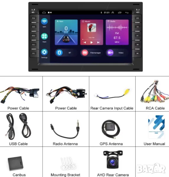 Супер промоционална цена! Директно от вносител. В наличност. Пълен комплект, готов за монтиране. Включена е и качествена водоустойчива камера с висока AHD резолюция и широк ъгъл на видимост. Също така е включен 6-метров кабел към нея в комплекта! По ваше желание може да добавите и втора предна камера.