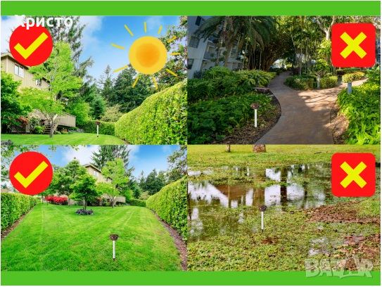 • Уреда е със Соларно захранване и вградени стандартни акумулаторни батерии /модел АА/ и не се нуждае от външно захранване.