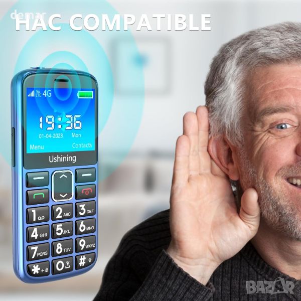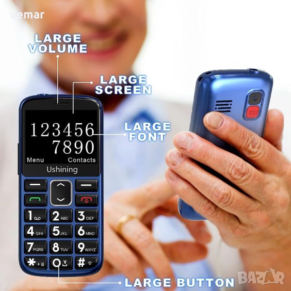Мобилният телефон 4G Senior разполага с големи шрифтове, големи икони на менюто и подобрени високоговорители, което го прави идеален за възрастни хора, деца и хора с увредено зрение. Включва камера, аудио, видео, Bluetooth, FM радио, калкулатор, будилник и календар. Съвместим с европейски 2G/3G/4G оператори, този телефон без договор поддържа SIM карти от различни оператори като Vodafone, Three, O2, Orange и др. Има SOS авариен бутон за бърз контакт при спешни случаи и поддържа кратко повикване със специални цифрови клавиши. Конекторът Type C осигурява лесно зареждане, а батерията от 1000 mAh предлага 300 минути време за разговори или 200 часа в режим на готовност. Паметта може да се разшири до 16 GB.