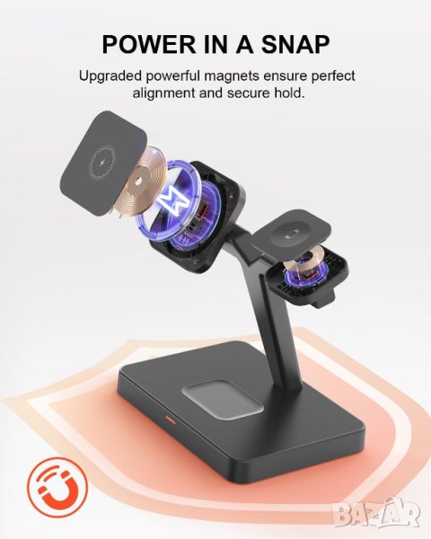 Стойка - зарядно устройство GEEKERA 3 в 1 за Magsafe: Безжична магнитна зарядна станция за iPhone