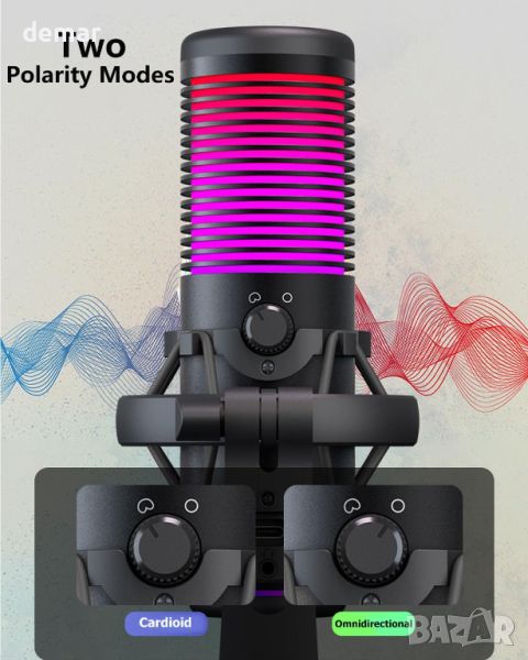 Този микрофон, включващ високочувствителна кондензаторна капсула и усъвършенствана технология за шумопотискане, осигурява кристално чист звук за игри, стрийминг и подкастинг. Той може да се похвали с регулируеми RGB светлинни ефекти, удобни контроли на микрофона за заглушаване, сила на звука, усилване и наблюдение и незабавна функция за включване и пускане през USB за PC, PS4 и PS5. В допълнение, той предлага два режима на полярност - кардиоиден и всепосочен - контролирани от копче, което позволява универсално аудио улавяне.