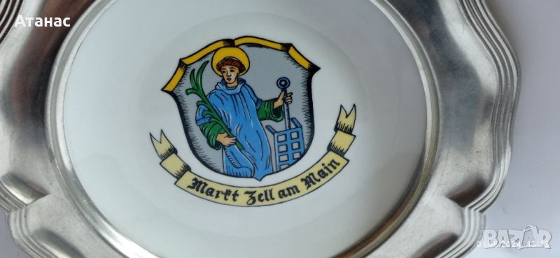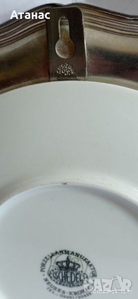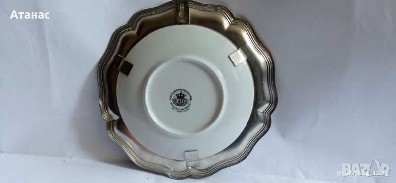Колекционерска порцеланова чиния за стена с цинкова периферия.Диаметър 22 см.Без забележки.