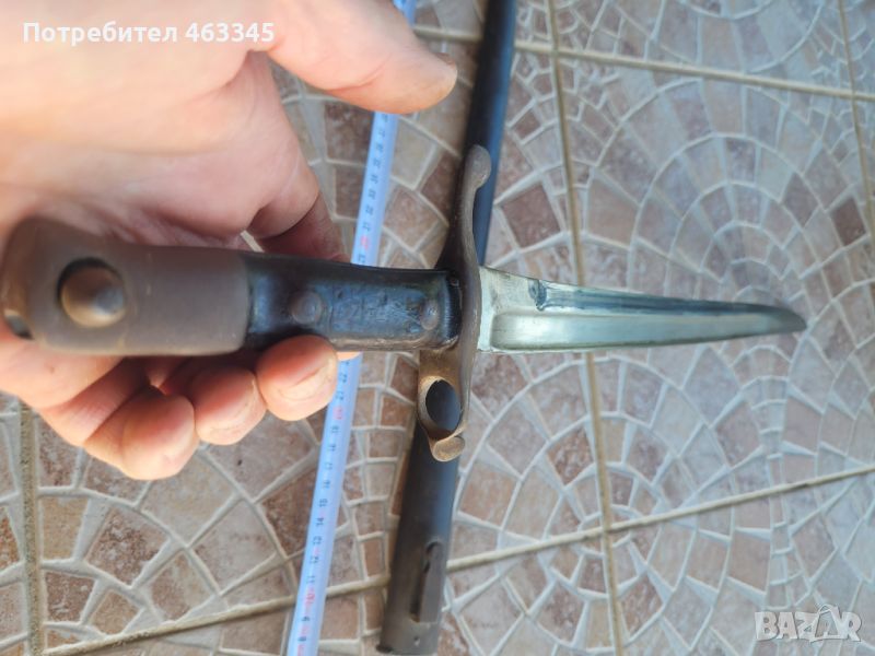 Щик португалски Кропачек, обр. 1886 г. Щикът е в много добро състояние. Железните части по дръжката са с отлична патина, само с повърхностна ръжда. Острието е без никаква ръжда, непочиствано и незаточвано. Дървенията е без дървояд. Налична кания в перфектно състояние.