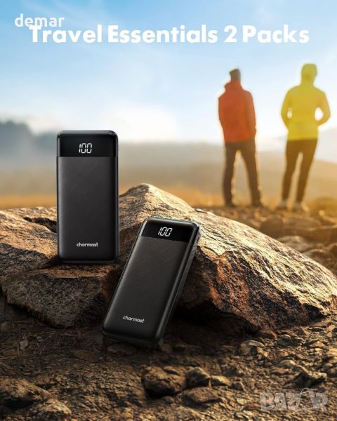 Charmast Power Bank с вградени кабели 2 броя, 10000mAh USB C батерия 6 изхода 3 входа