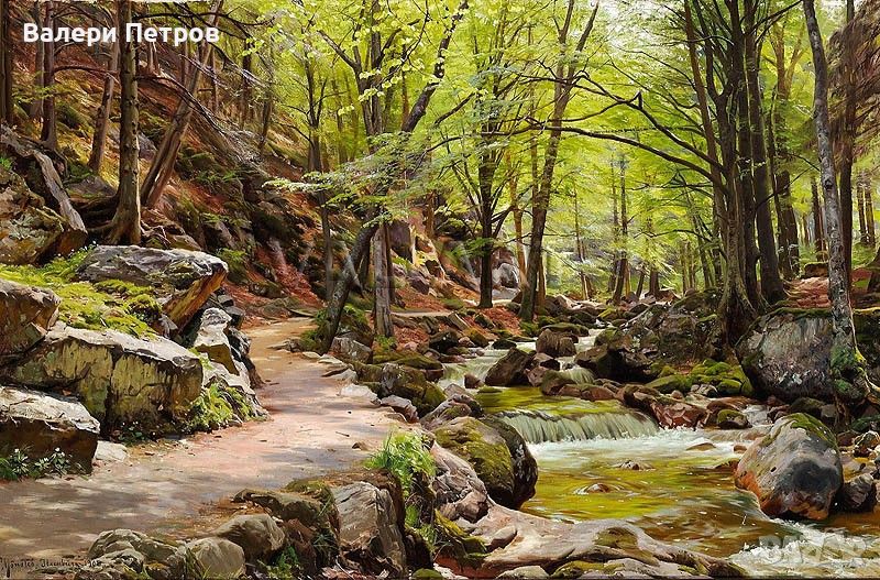 Педер Морк Монстед (1859 - 1941) е един от най-изявените пейзажисти на своето време, известен с фотореалистичния си стил. Обучавал се е в Академията на Копенхаген от 1876 до 1879 година и работи под ръководството на художниците Педер Северин Кройър и Уйлям Адолф Бугро. Монстед пътува през цялата си кариера, във Франция, Швейцария, Италия и Северна Африка. Макар и добре известен с пейзажите си, той рисува също портрети и фигурални композиции. Бил е любимият художник на гръцкия крал Джордж, от когото е поканен през 1893 година в Атина, където работи в продължение на една година. Монстед успява със забележително майсторство да пресъздаде както красотата на швейцарските Алпи, така и спокойствието на горите в родната му страна.