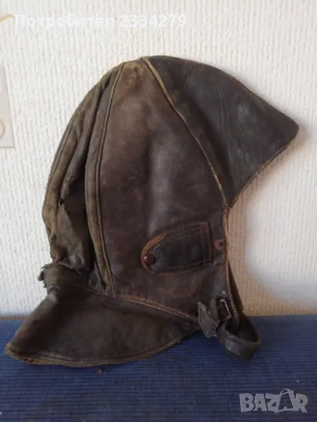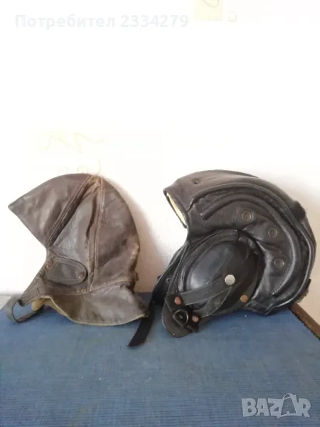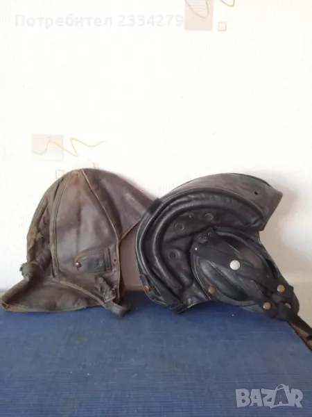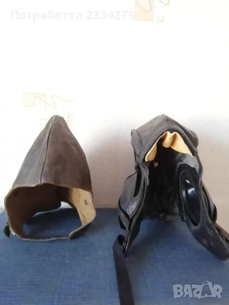 N:1 Стара кожена шапка, каска, шлемофон, пилотска от 30-те години, използвани още за автомобили, мотори и летателни балони, цена 45€.;
