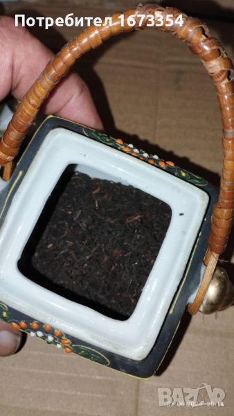 В момента има чай в нея но може да се ползва кой за каквото си иска може и кутийка за бижута