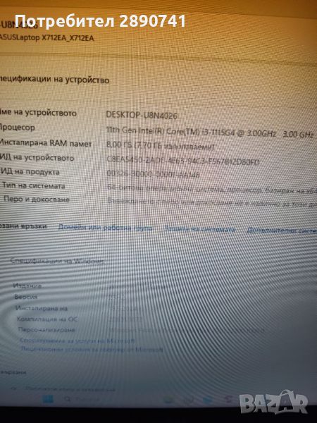prodavam laptop ASUS 17 X712EA parametrite na snimkite.Prichina za prodajba nemie nujen