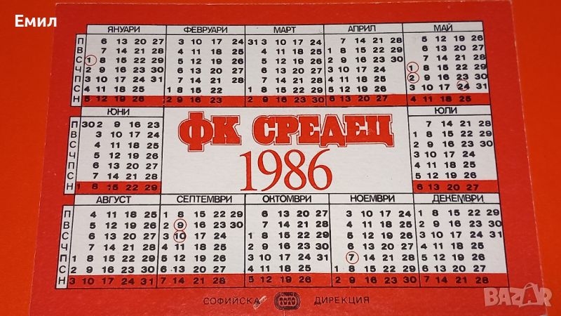 Календарче СРЕДЕЦ 1986 → Обява 46011522