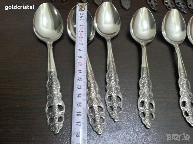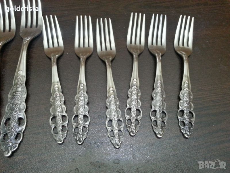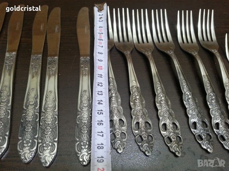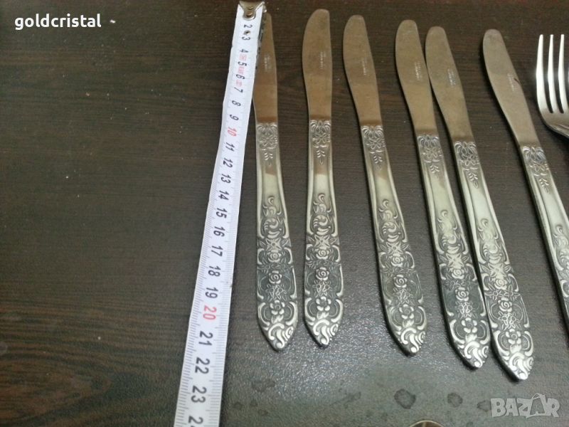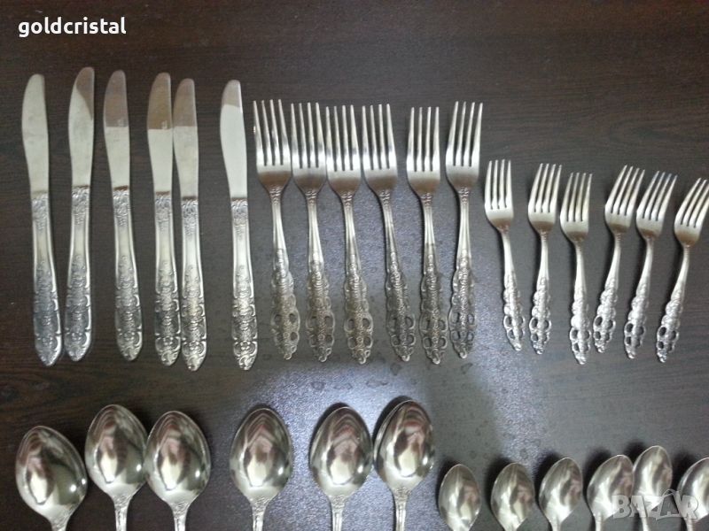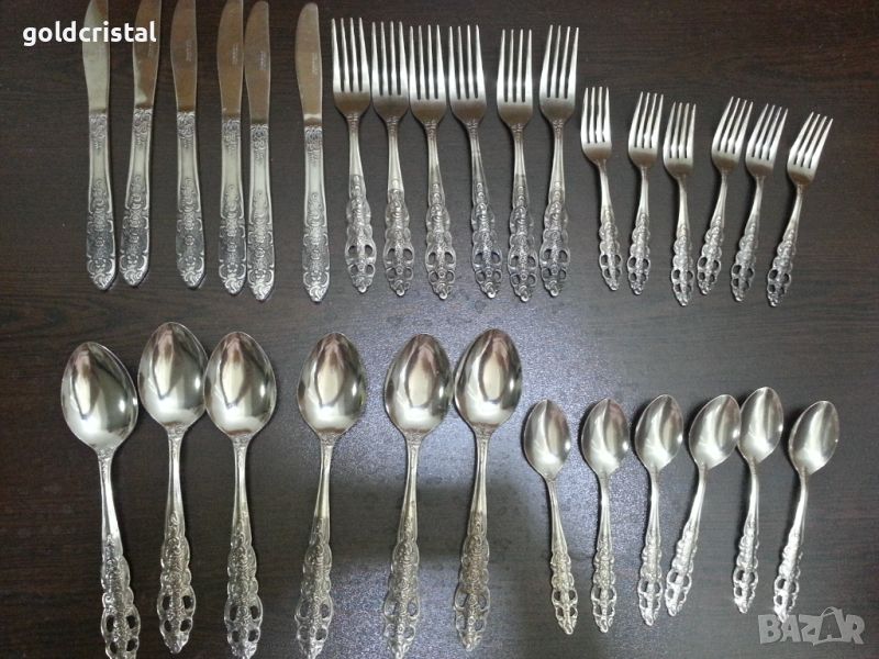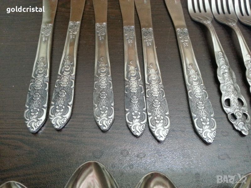 Стари немски прибори за хранене неръждаеми богато гравирани дръжки 6 бр ножове 6 бр вилици 6 бр лъжици 6 бр лъжички 6 бр вилички сервиз комплект сет лот ретро арт декор винтидж колекция стари старинни антикварни предмети обзавеждане за дома и семейството подходящи за подарък за ценители и колекционери