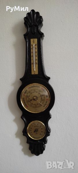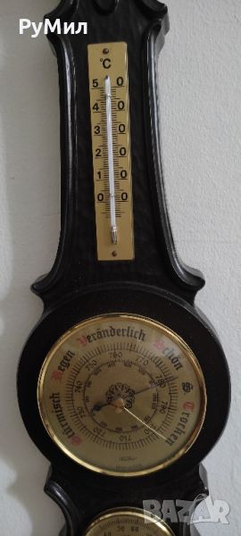 Продавам метеорологична станция. Термометър, хидрометър, барометър. Функционира. Марка "Фишер", ГДР. Размери- височина - 51 см, ширина 14 см.