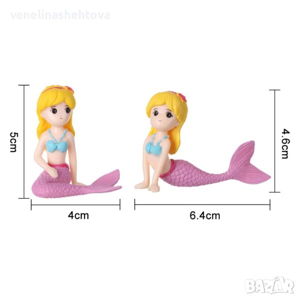 Размери на русалките с опъната опашка :4.6*6.4см.